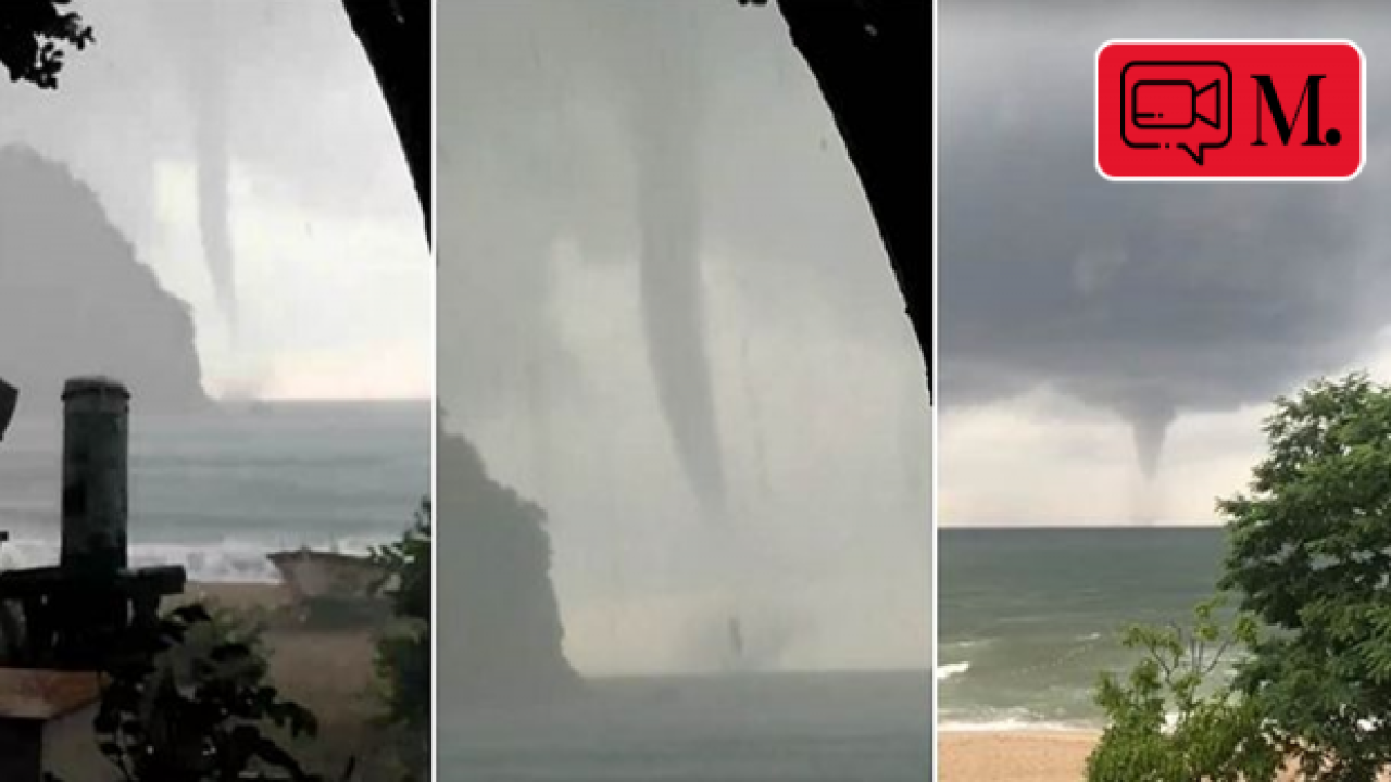 Gökçün Demirci sahili açıklarında oluşan hortum sahil kıyısındaki kayalık bölgeye kadar yaklaştı.