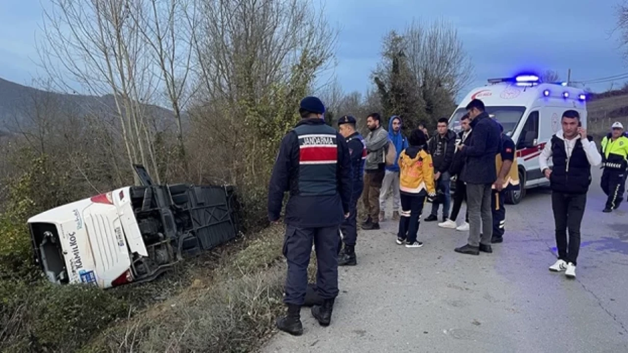 Bartın-Zonguldak kara yolu Akçamescit mevkisinde sürücüsünün kimliği henüz öğrenilemeyen 22 FM 053 plakalı yolcu otobüsü kontrolden çıkarak devrildi.