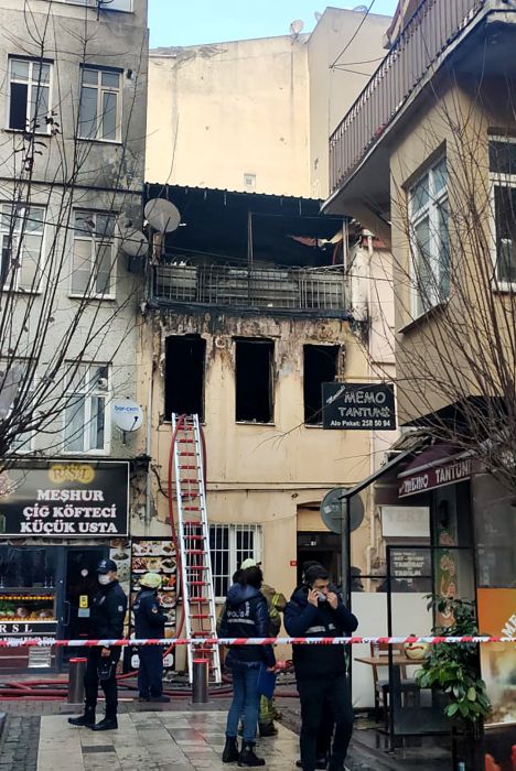 Ortaköy Gözlükçü Sokak'taki 3 katlı dışı betonla kaplı ahşap müstakil evde henüz belirlenemeyen nedenle yangın çıktı.