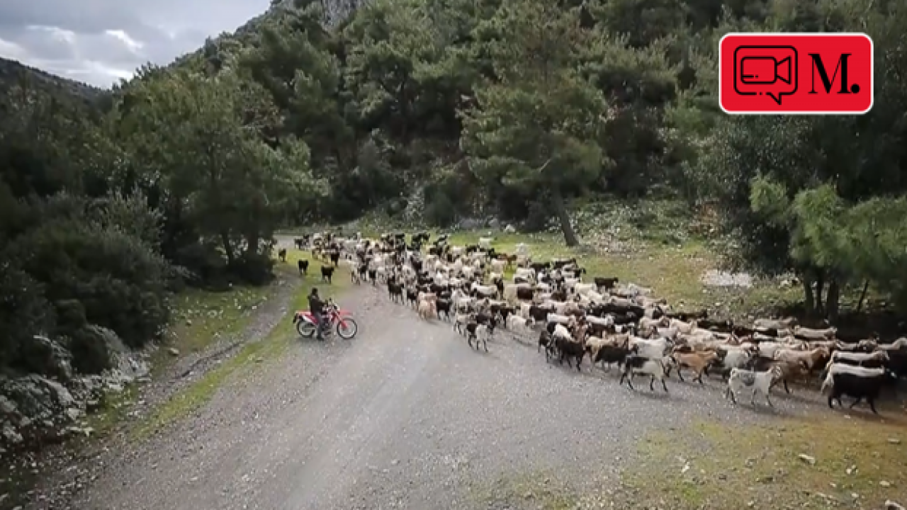 Her sabah ağıldan çıkardığı keçilerini motosikletine binerek önüne katan Çoban, drone cihazını da yanına alarak Bodrum'un kırsal kesimlerine yol alıyor.