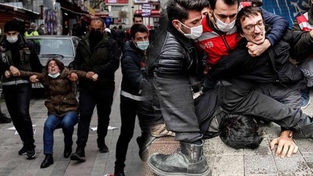 Çok sayıda öğrenci yerlerde sürüklenerek, ters kelepçe ile gözaltına alındı. Öğrencilerin gözaltı aracında da polis tarafından darp edildiği görüldü.