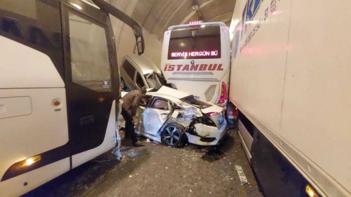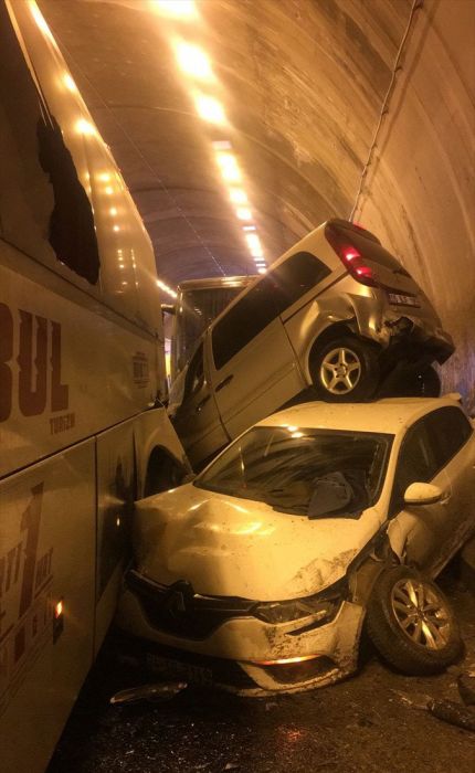 Bolu Dağı Tüneli içerisinde çok sayıda aracın karıştığı zincirleme trafik kazası meydana geldi.