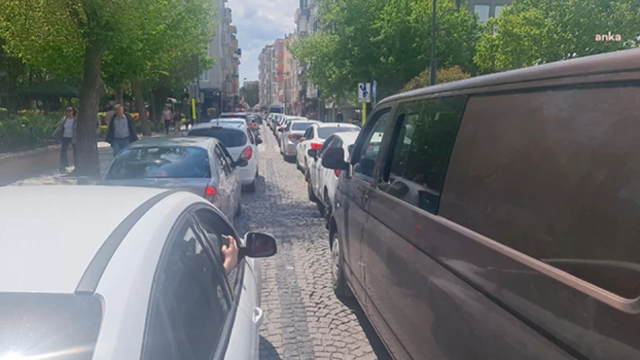 İskele Meydanı'ndan başlayan araç kuyruğunun, Kayserili Ahmet Paşa Caddesi’ne kadar yaklaşık 1 kilometre uzadığı görüldü.