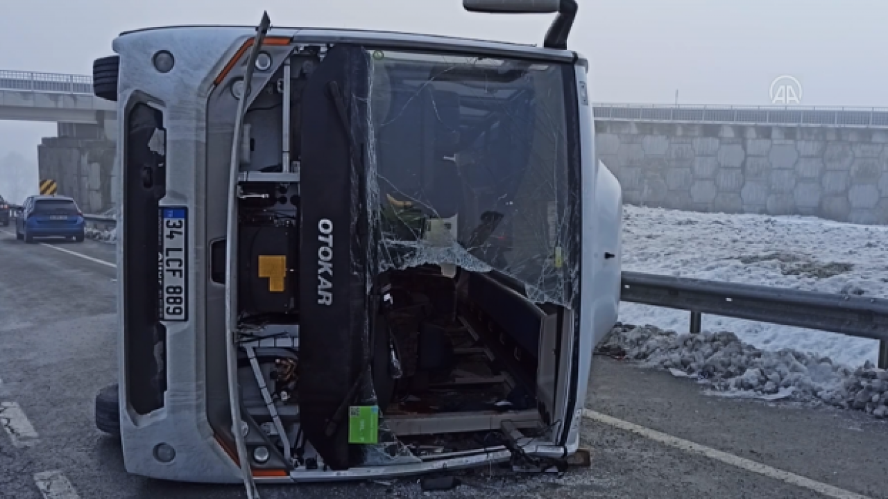 İstanbul Havalimanı’na polis memurlarını taşıyan minibüs Çatalca Karaağaç Bölgesinde buzlanma ve yoğun sis nedeniyle devrildi. 1’i ağır 14 polis memurunun yaralandığı öğrenildi.