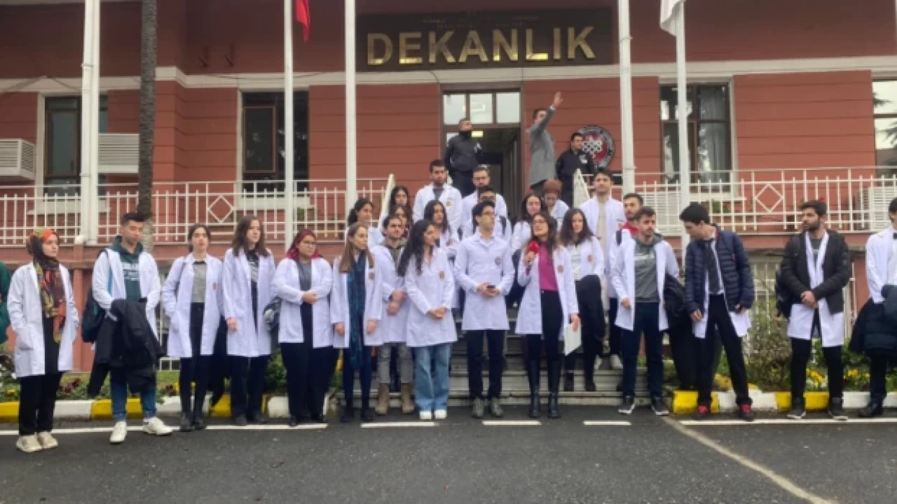 Grup adına konuşan Tıp Fakültesi öğrencisi Enes Karaca, "Ülkemizin içinde bulunduğu böyle hassas bir zamanda, bizleri ve ailelerimizi olumsuz biçimde derinden etkileyen bu kararların alınmasında gerekli özenin gösterilmemiş olması çok üzücüdür" dedi.