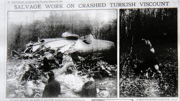 Eski başbakanlardan Adnan Menderes; Türkiye, İngiltere ve Yunanistan arasında mutabakata varılan Üçlü Kıbrıs Antlaşması'nı imzalamak üzere 1959'da gittiği Londra'daki Gatwick Havalimanı'na 4,5 kilometre kala, Surrey bölgesindeki Newdigate köyü yakınlarındaki ormanlık alana düşen uçaktan kurtuldu.
