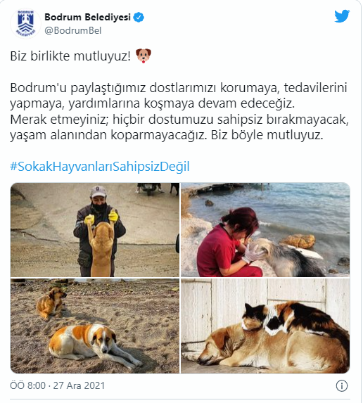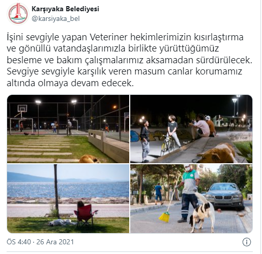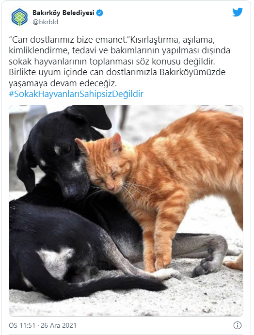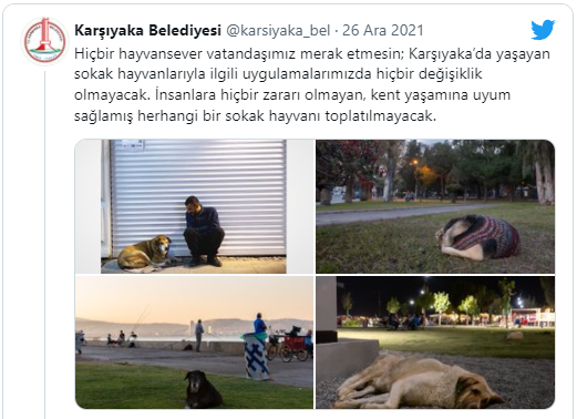 Konuyla ilgili tüm belediye başkanlarına seslenen Cumhurbaşkanı Erdoğan, sahipsiz hayvanlar için, "Şimdi ben buradan birinci derecede büyük şehirlerimiz olmak üzere tüm belediye başkanlarıma sesleniyorum. Sahipsiz hayvanlar için lütfen sıcak ve güvenli barınaklar kurarak gıda artıklarından hayvan maması üretimini teşvik ederek pek çok gönül kazanabiliriz, gönül kazanabilirsiniz." ifadelerini kullandı.