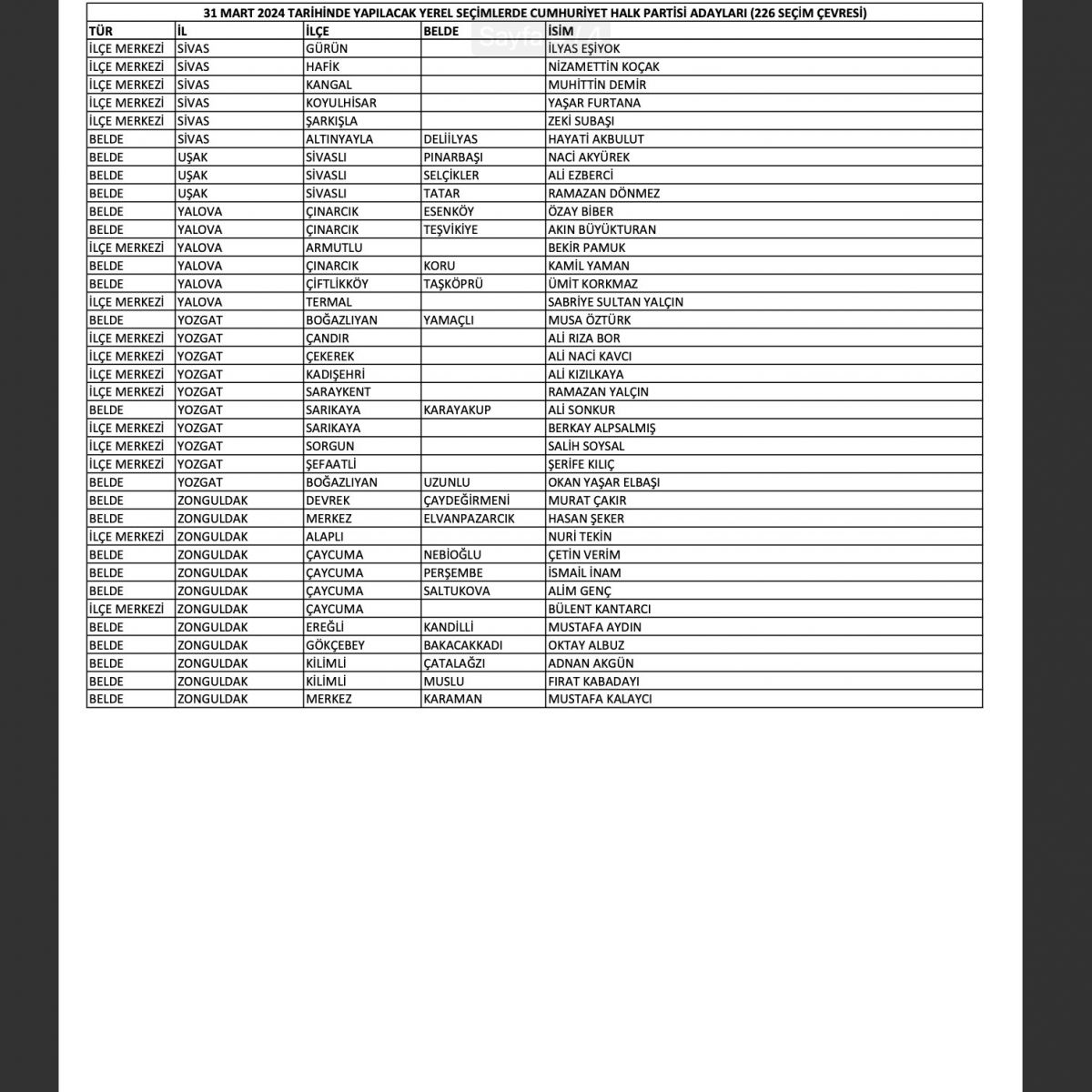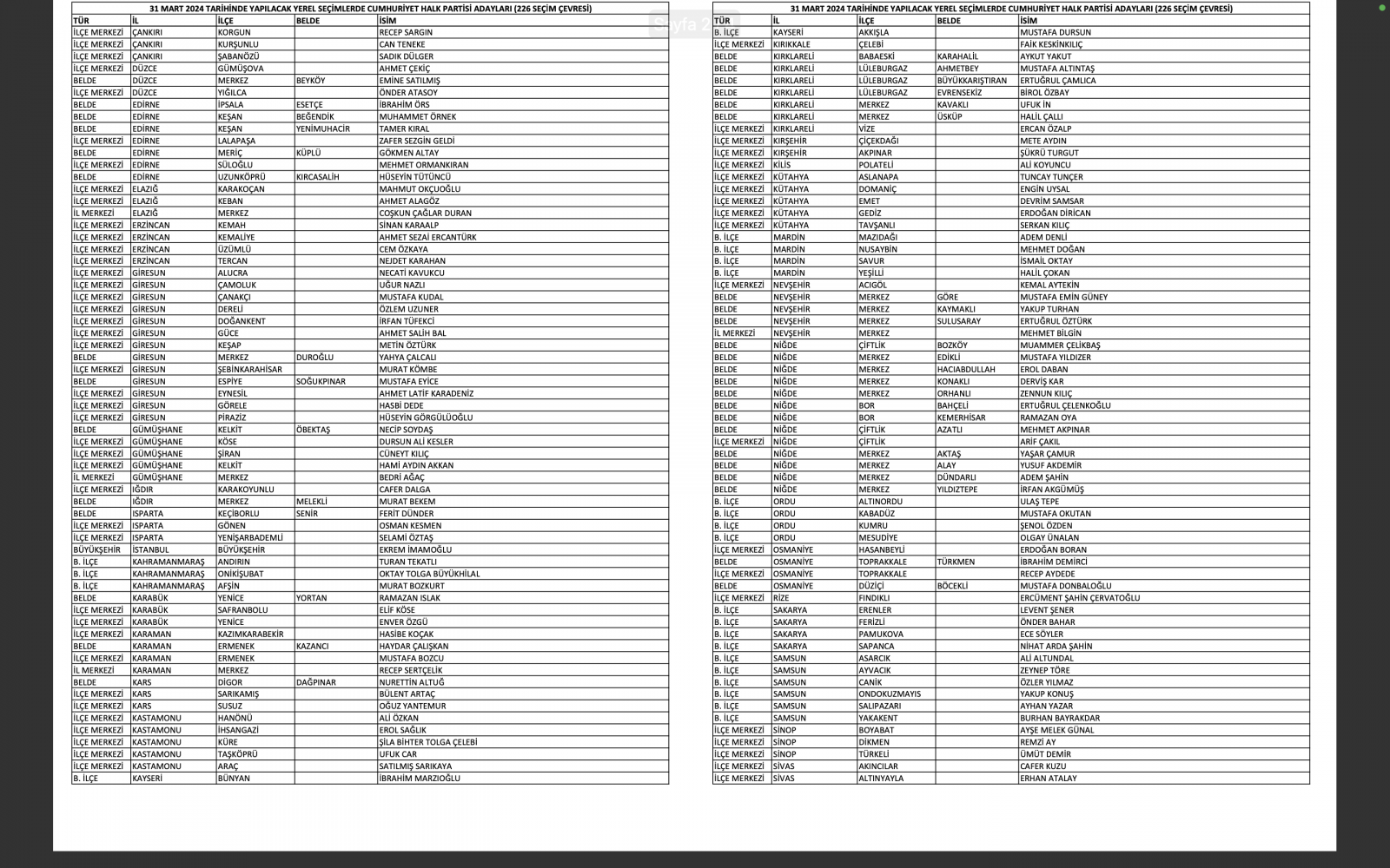Bu illerin yanı sıra aralarında tek adayın bulunduğu toplam 200’ün üstünde il ve ilçe ile ilişkin de adaylar açıklandı: