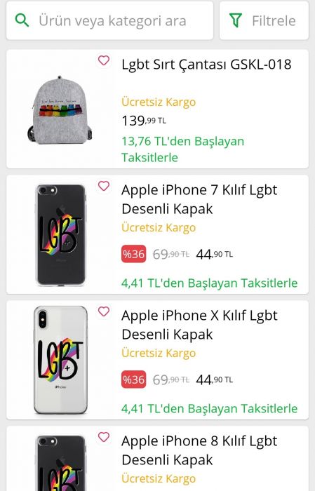 Ayrıca şunu da belirtebiliriz. O dönemde hedef gösterilen ürünler veya benzerleri şu anda sitede yer almıyor. Ya da yer alsa da ‘LGBT’ kelimeleri kullanılmadan başka nasıl aratılabilir anlamak pek mümkün değil.