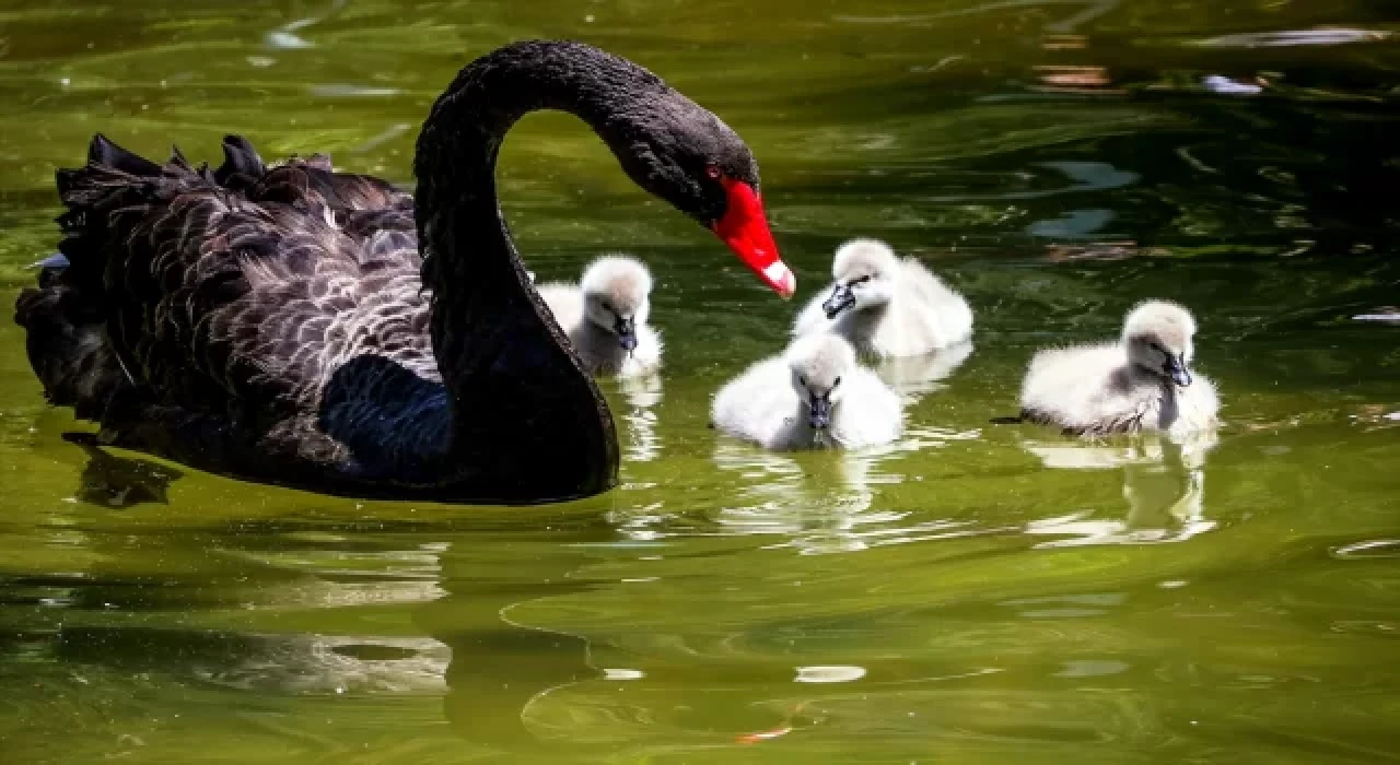 Çankaya'daki parkın simgelerinden 2 yetişkin siyah kuğuya, iki gün önce yumurtadan çıkan 4 yavru kuğu daha eklendi.