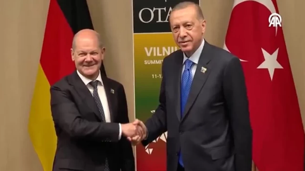 Heyetlerin de katıldığı Scholz görüşmesinde Cumhurbaşkanı Erdoğan'a, Dışişleri Bakanı Hakan Fidan, Milli Savunma Bakanı Yaşar Güler, MİT Başkanı İbrahim Kalın, Cumhurbaşkanlığı İletişim Başkanı Fahrettin Altun ile Cumhurbaşkanlığı Başdanışmanı Büyükelçi Akif Çağatay Kılıç eşlik etti.