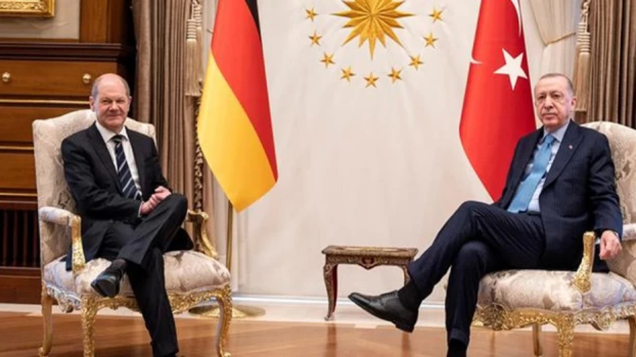 Cumhurbaşkanlığı İletişim Başkanlığından yapılan açıklamaya göre, görüşmede, Türkiye-Almanya ilişkileri ve Rusya-Ukrayna savaşı başta olmak üzere bölgesel konular değerlendirildi. Cumhurbaşkanı Erdoğan, Ukrayna’daki savaşın sona ermesine yönelik çabalarını kararlılıkla sürdürdüklerini de anlattı.