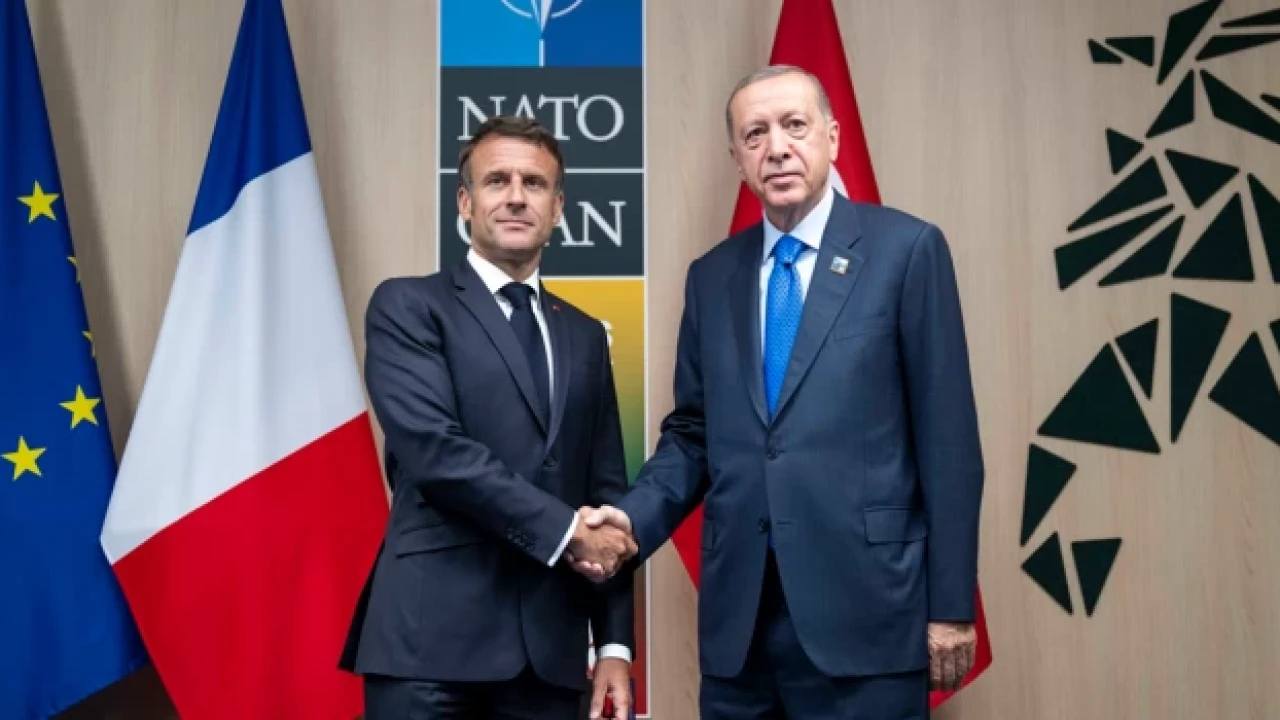Erdoğan, zirve kapsamında, bugün LİTEXPO Sergi ve Fuar Merkezi’nde Fransa Cumhurbaşkanı Macron ile bir araya geldi.
