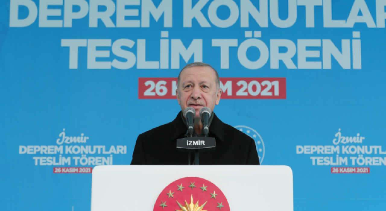 Cumhurbaşkanı Erdoğan, Bayraklı Manavkuyu'da düzenlenen Deprem Konutları Teslim Töreni'nde konuştu. Erdoğan, "İzmir'de de bu mekanizmayı işlettik. Depremzedelerin yaralarını sarmak için gece gündüz çalıştık, çabaladık, hiç kimseyi aç bırakmadık, açıkta bırakmadık, korunaksız, sahipsiz, çaresiz bırakmadık" dedi.