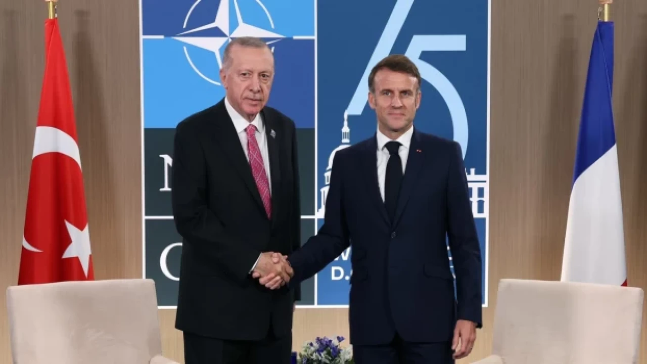 Cumhurbaşkanımız Sayın Recep Tayyip Erdoğan, NATO Zirvesi için gittiği Vaşington’da Fransa Cumhurbaşkanı Emmanuel Macron ile bir görüşme gerçekleştirdi. Görüşmede Türkiye ile Fransa ikili ilişkileri, Ukrayna-Rusya savaşı, İsrail'in Filistin'e yönelik saldırılarıyla bölgesel ve küresel konular ele alındı. Cumhurbaşkanı Erdoğan görüşmede, Türkiye ile Fransa ilişkilerinin her alanda artırılmasının önemini ifade ederken Türkiye'nin Avrupa Birliği üyelik sürecinin canlandırılmasının gerekli olduğunu, Türkiye'nin bu konuda desteklenmesinin beklendiğini belirtti. Cumhurbaşkanı Erdoğan, İsrail'in ateşkes konusunda Batılı ülkeler tarafından teşvik edilmesinin bölgesel ve küresel barışa katkı sağlayacağını, Fransa'nın da bu noktada somut adım atmasının yararlı olacağını söyledi.