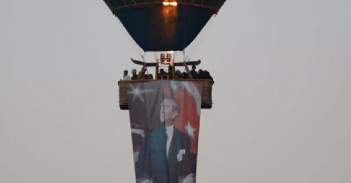 Kapadokya bölgesinde sıcak hava balonu turu yapan işletmeler, 29 Ekim Cumhuriyet Bayramı dolayısıyla sepetlerine Türk bayrağı ve Atatürk posterleri asarak havalandı. Turistler, güneşin doğuşu ile başlayan sıcak hava balonu turunda yaklaşık 1 saat peribacalarının arasında süzülerek, Cumhuriyet Bayramı'nın coşkusuna ortak oldu. Türk bayrağı ve Atatürk posterli sıcak hava balonları, gökyüzünde güzel görüntüler oluşturdu.