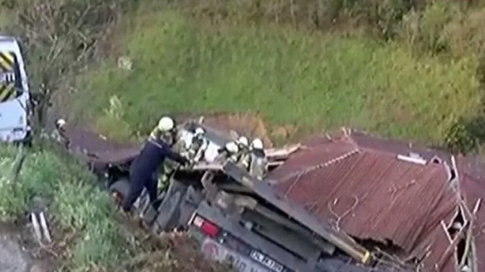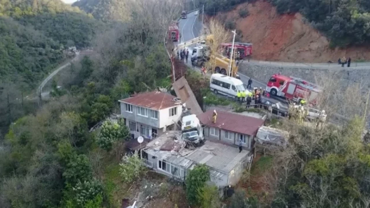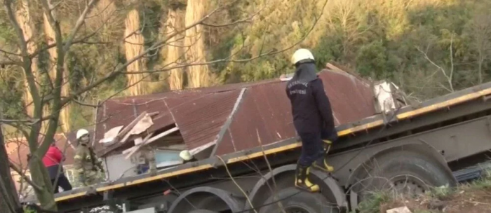 Maden Mahallesi Özdereiçi Caddesi’nde yokuştan inen Remzi Bingöl yönetimindeki 34 BV 1304 plakalı demir yüklü TIR, yolun alt tarafında bulunan gecekondunun üzerine düştü.