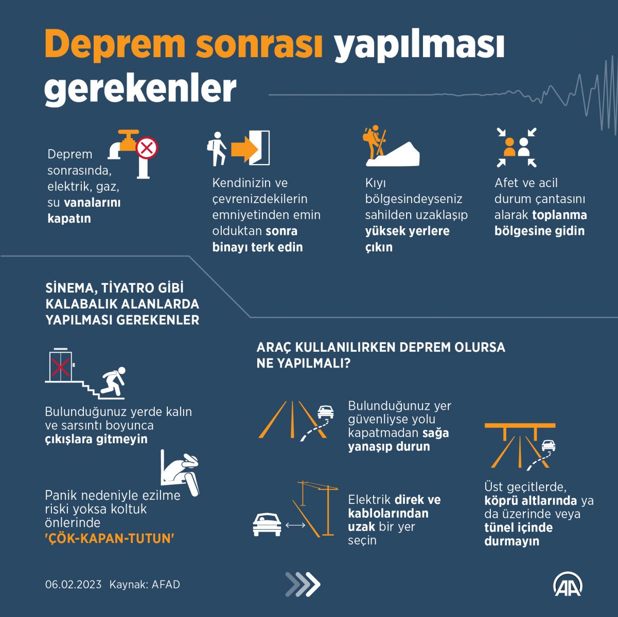 Kahramanmaraş’ın Pazarcık ilçesi merkezli, çevre illerden de hissedilen 7.4 büyüklüğündeki deprem sonrasında bölgede neler yapılması gerektiği araştırılıyo. Bu bağlamda, Deprem sonrasında neler yapılması gerekir? Afetzedeler neler yapmalı? İşte detaylar…