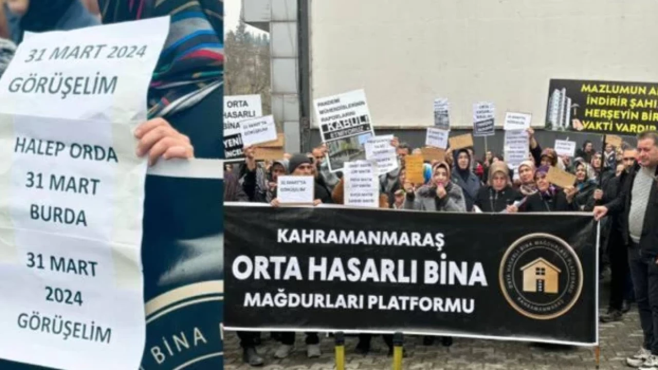 Kahramanmaraş depremlerinde orta hasar alan binaların Türk Mühendis ve Mimar Odaları Birliği (TMMOB) denetiminde yeniden incelenmesini ve “uygun olmayan alan” uygulamasının kaldırılmasını isteyen yurttaşlar, dün AK Parti il başkanlığı önünde toplandı. “Sandıkta görüşürüz” yazan dövizler tutan yurttaşlar, hazırladıkları temsili oy pusulasını sarı zarf içinde AK Parti il binası önüne bıraktı.