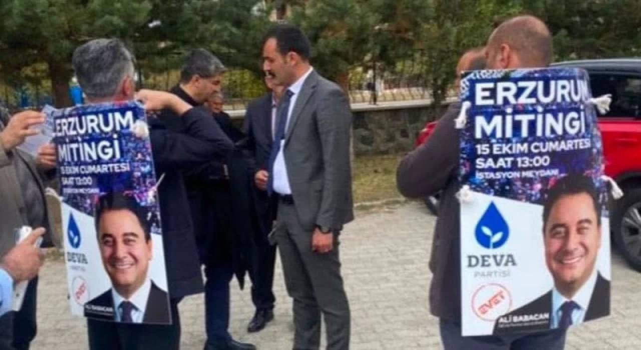 DEVA Partisi Genel Başkanı Ali Babacan’ın Erzurum mitingi için reklam panolarının maksatlı olarak kendilerine kiralanmadığını iddia eden partililer, miting duyurusunu sırtlarına asarak yaptı. Miting ilanlarını sırtlarına asan DEVA Partililer sokaklarda yürüyerek tanıtım yaptılar.