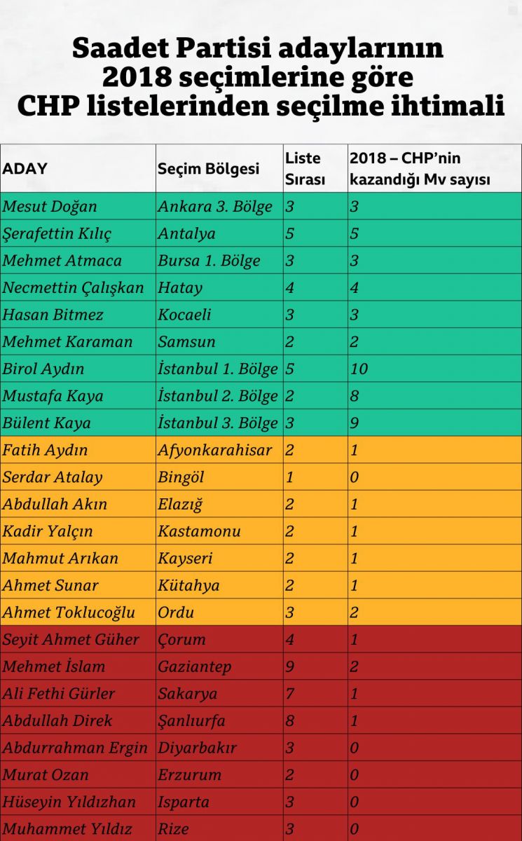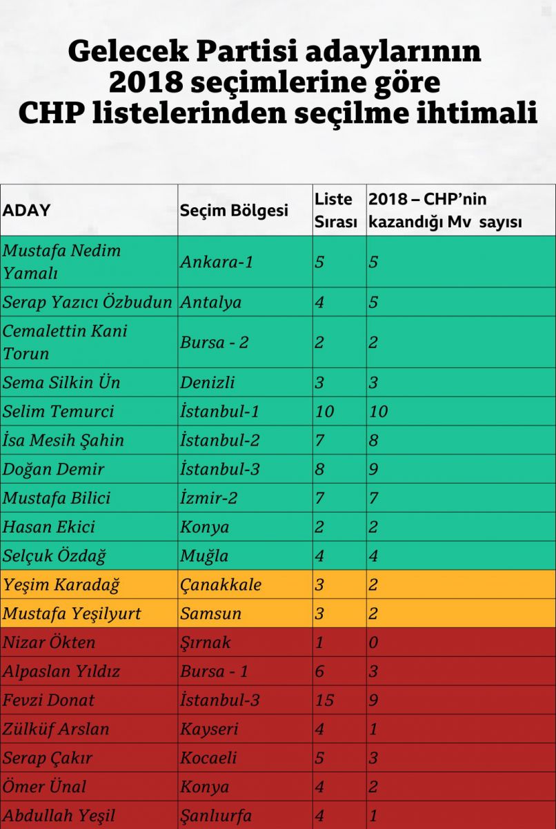 DEVA Partisi, Saadet Partisi ve Gelecek Partisi adaylarının CHP listelerinden seçilme ihtimali nedir?