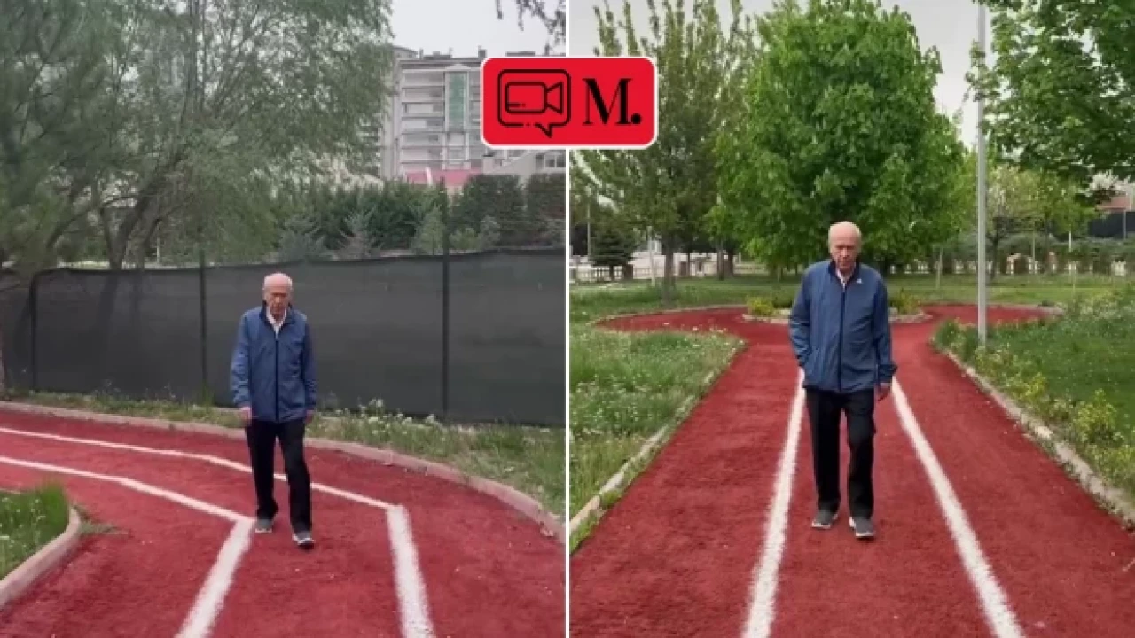 Videoda Bahçeli'nin bir parktaki parkurda eşofman ve spor ayakkabıyla yürümesi yer aldı.
