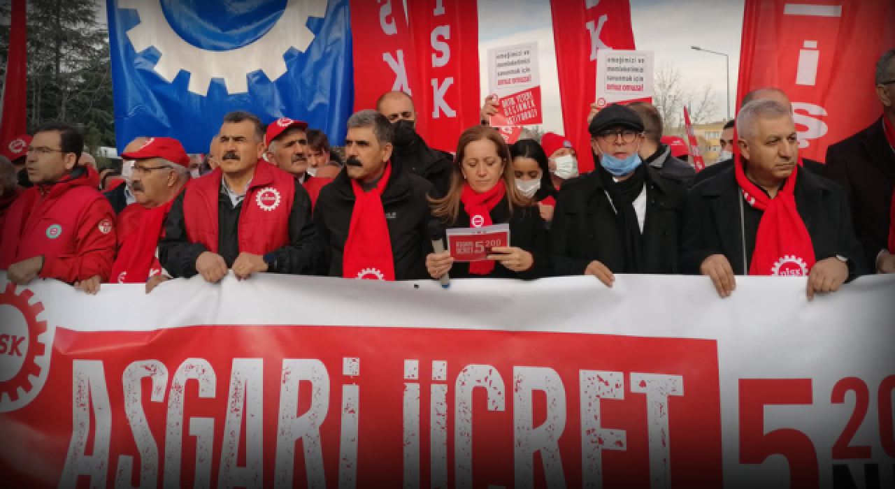 Çerkezoğlu, 2022 yılı asgari ücret taleplerinin net 5 bin 200 lira olduğunu kitlesel basın açıklamalarıyla duyurduklarını belirterek, “Biz çalışıyoruz, biz üretiyoruz. Türkiye büyüdüyse payımızı istiyoruz. Ülkeyi yönetenler Türkiye ekonomisinin ne kadar büyüdüğünü ifade ediyorlar. En son açıklanan üçüncü çeyrek rakamlarında Türkiye ekonomisi 7,4 büyüme kaydetti. Fakat bu büyümeden payını alamayan emekçiler var” ifadelerini kullandı.