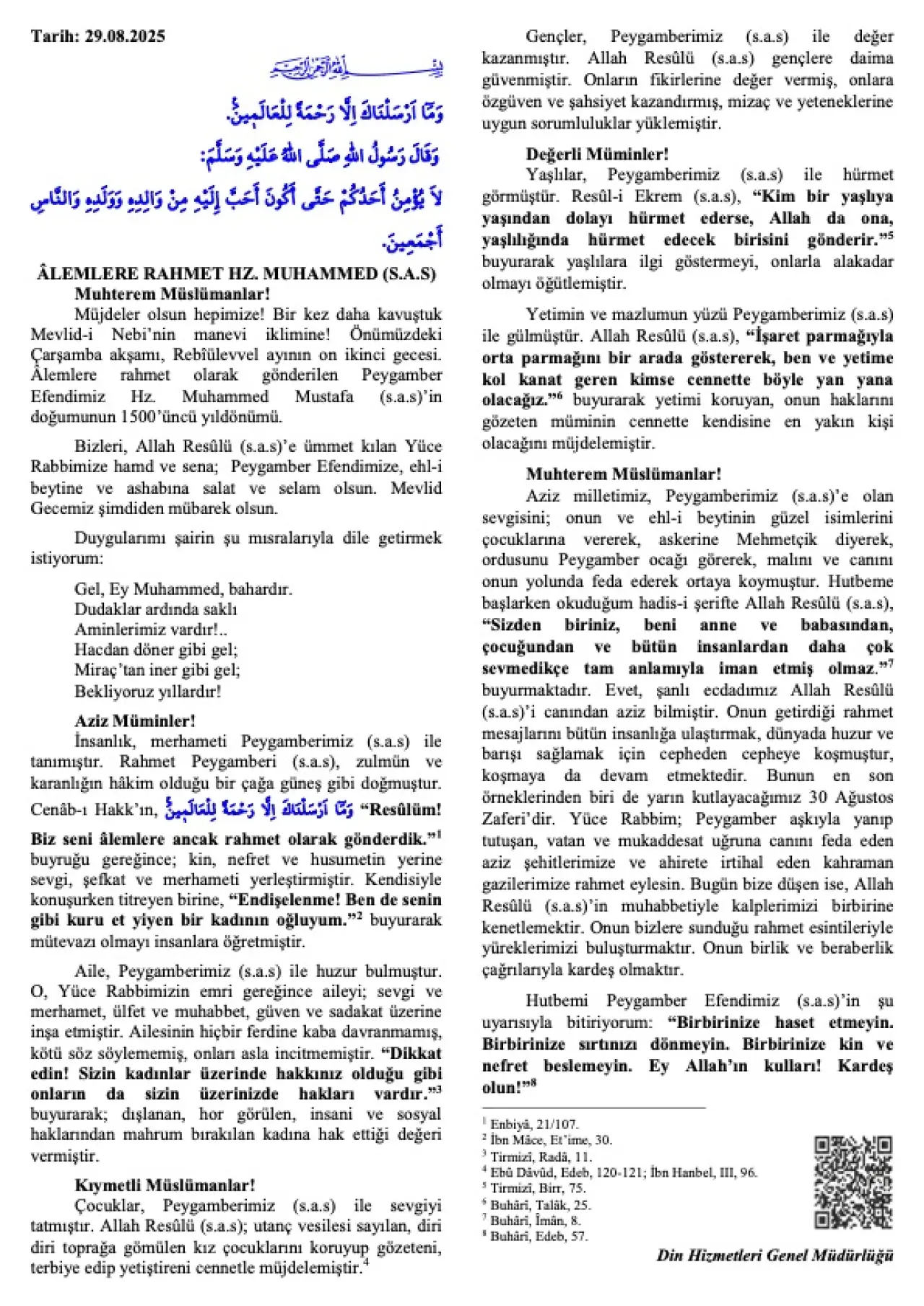 Yüce Rabbim; Peygamber aşkıyla yanıp tutuşan, vatan ve mukaddesat uğruna canını feda eden aziz şehitlerimize ve ahirete irtihal eden kahraman gazilerimize rahmet eylesin. Bugün bize düşen ise, Allah Resûlü (s.a.s)’in muhabbetiyle kalplerimizi birbirine kenetlemektir.