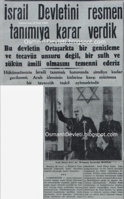 Foto “İsrail Devletini resmen tanımaya karar verdik” Cumhuriyet Gazetesi 29 Mart 1949