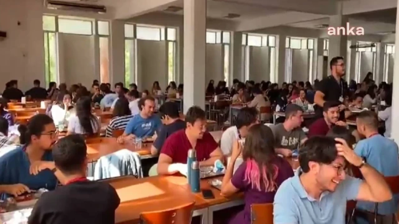 Ege Üniversitesi'nde yeni akademik yıl, öğrencilerin yüzde 250’yi aşan yemek zammı protestosuyla başladı. Öğrenciler, öğlen yemeğinde çatal ve kaşıkları 1 dakika boyunca masalara vurarak zammı protesto etti.