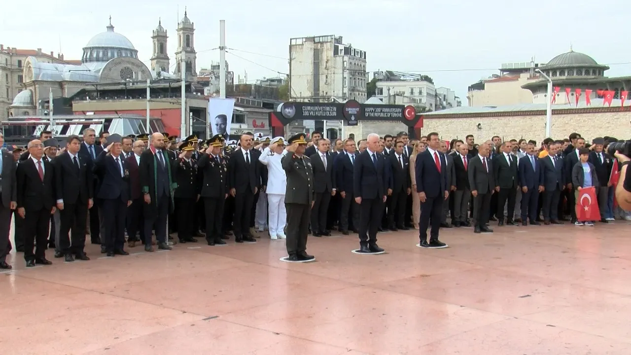 Törende sırasıyla; Gül, Sivri ve İmamoğlu, kurumları adına Taksim Cumhuriyet Anıtı’na çelenk bıraktı. Cumhurbaşkanı Recep Tayyip Erdoğan’ın mesajının okunmasının ardından önce İmamoğlu, sonra Gül, Anıt Özel Defteri’ne yazdıkları mesajları okudu.
