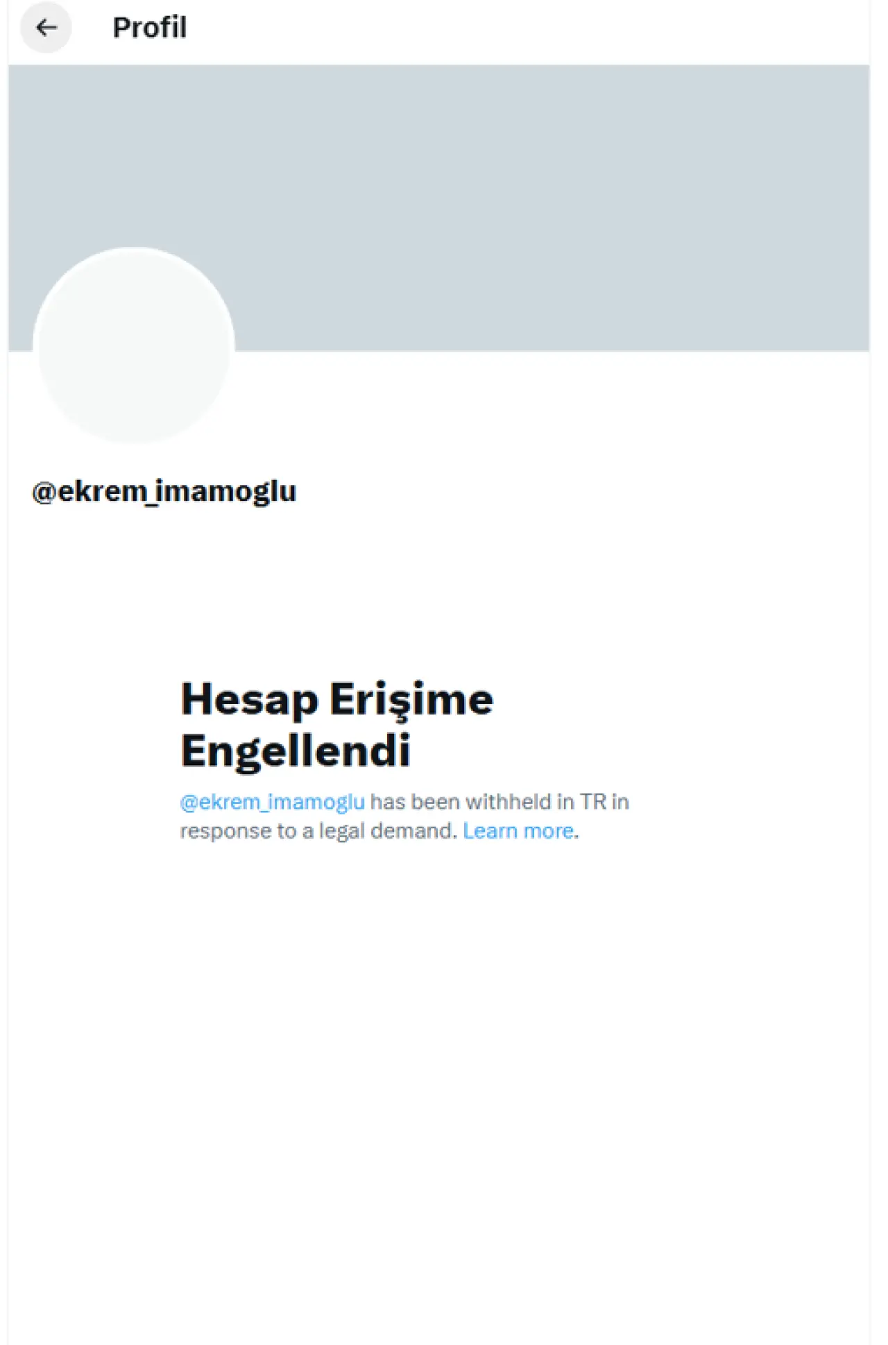 CHP'nin Cumhurbaşkanı Adayı ve İstanbul Büyükşehir Belediyesi Başkanı Ekrem İmamoğlu'nun X sosyal medya platformu hesabına erişim engeli getirildi.