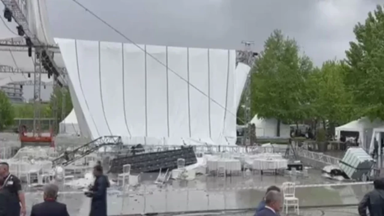 Türkiye Odalar ve Borsalar Birliği (TOBB) 79. Olağan Genel Kurulu’nda dışarıya kurulan platform şiddetli yağmur nedeniyle çöktü.