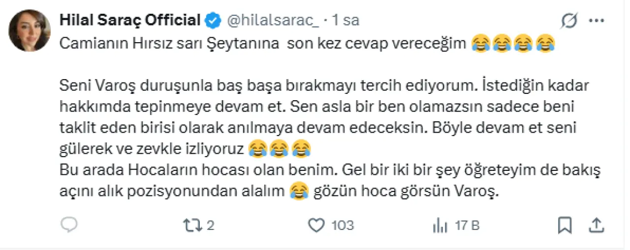 Saraç ise Nihan Urel’e sosyal medya üzerinden sert ifadelerle karşılık verdi: