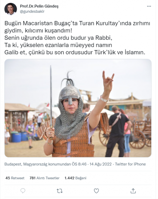 “Bugün Macaristan Bugaç’ta Turan Kurultay’ında zırhımı giydim, kılıcımı kuşandım!