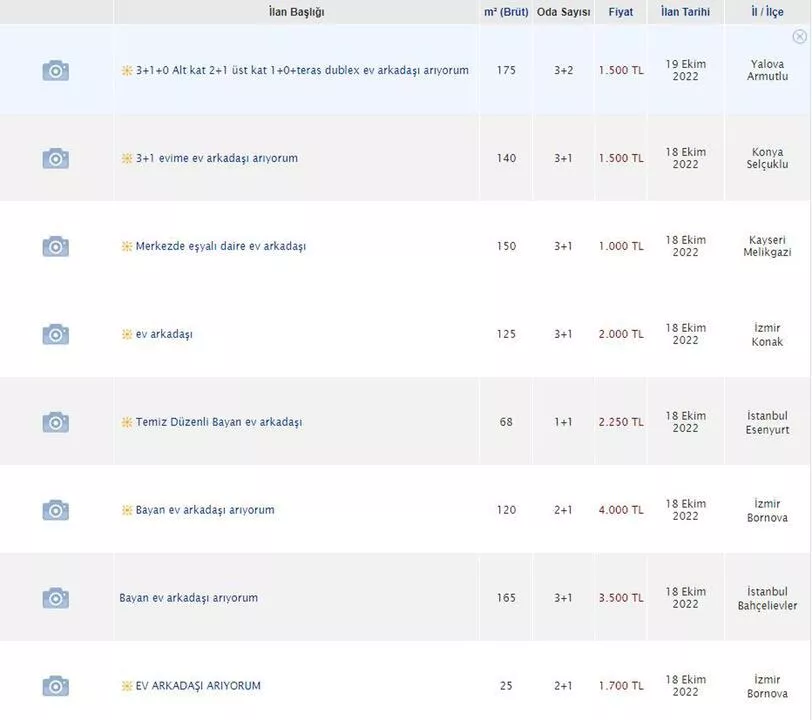 Platform üyeleri çoğunlukla 'Kiralık Ev' başlığı altındaki ilanların açıklama kısmında evi ya da odayı paylaşma isteğinden bahsederken, bazı ilanlardaki; 'Ev arkadaşı aranıyor', 'Kız öğrenci ev arkadaşı aranıyor', 'Öğrenci evine arkadaş aranıyor', yazıları dikkati çekti.