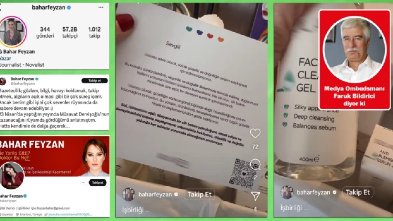 Medya Ombudsmanı Faruk Bildirici, 'Cilt bakım ürünü reklamı yapan Bahar Feyzan’a eleştirim ve yanıtındaki üslup' başlıklı yazı yayınladı.
