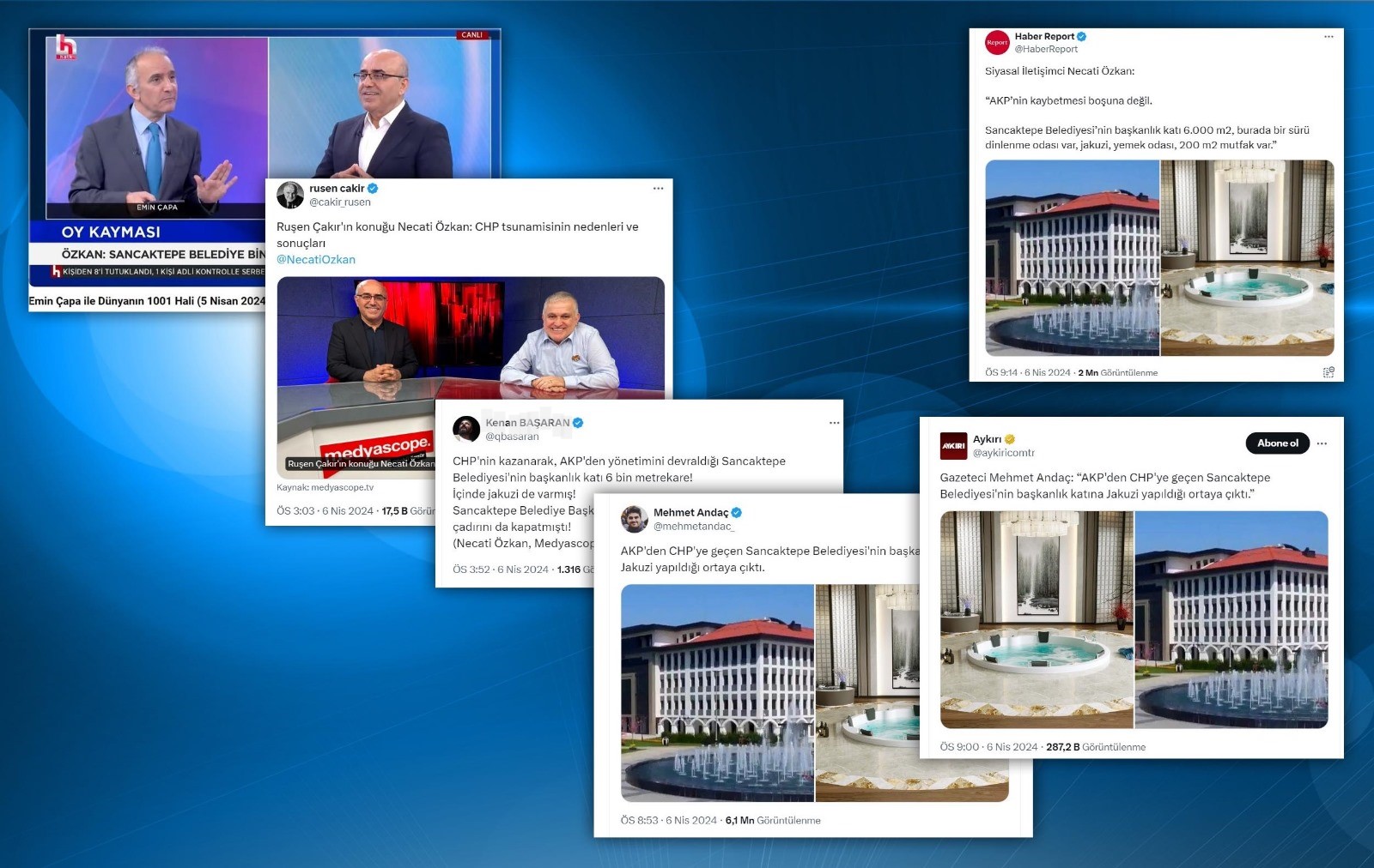 Aslında İstanbul Büyükşehir Belediye Başkanı Ekrem İmamoğlu’nun kampanya direktörü Necati Özkan, Sancaktepe Belediyesi'nin 6 bin metrekarelik “Başkanlık katı”nda bir de jakuzi olduğunu ilk olarak Emin Çapa’nın Halk TV’deki programında söylemişti. Özkan’ın, 5 Nisan akşamı yayımlanan programdaki sözleri, haber yapılmamasının etkisiyle olsa gerek ki sosyal medyanın ve medyanın dikkatini çekmedi.