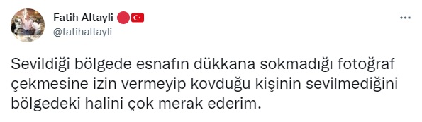 HaberTürk yazarı Fatih Altaylı, İstanbul Büyükşehir Belediyesi Sözcüsü Murat Ongun'un "Nagehan Alçı o bölgede çok seviliyor. Biz fotoğrafın bütününe bakıyoruz" sözlerine tepki gösterdi. Altaylı, "Sevildiği bölgede esnafın dükkana sokmadığı fotoğraf çekmesine izin vermeyip kovduğu kişinin sevilmediğini bölgedeki halini çok merak ederim" ifadelerini kullandı.