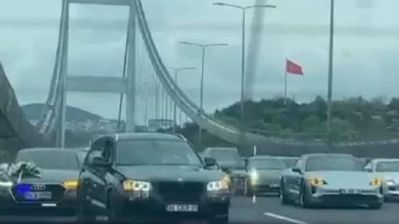 FSM Köprüsü’nde tüm şeritleri kapatan düğün konvoyu trafiği yavaşlattı.