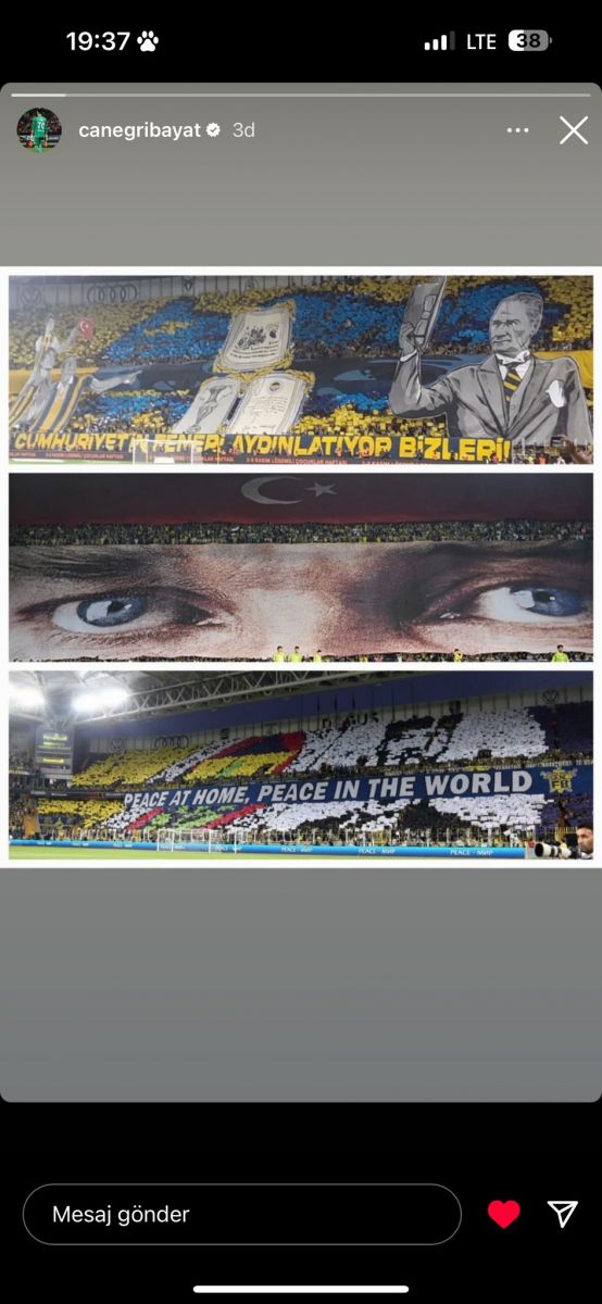 Fenerbahçe'nin kalecisi İrfan Can Eğribayat'ın paylaşımı