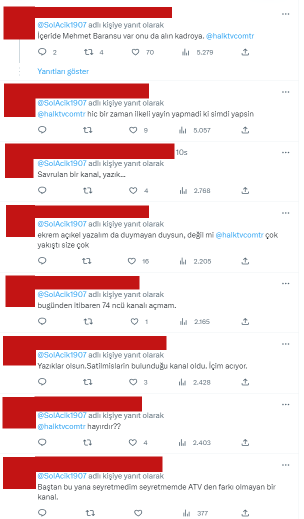 Şimdi soruyoruz: ilkeli yayın politikalarınızı bu şekilde itibarsızlaştırmak mı istiyorsunuz? @halktvcomtr” şeklinde paylaşımda bulundu.