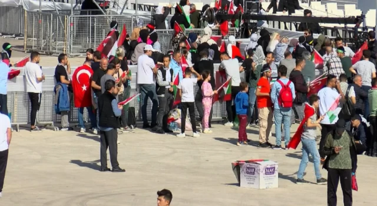 Miting alanına 12 ayrı giriş kapısında oluşturulan güvenlik noktalarından geçerek alınan vatandaşların, ellerinde Türk bayrağı ile Filistin bayrağı taşıdıkları görüldü. Katılımcıların miting alanına ulaşması için kentin 39 ilçesinden otobüsler kaldırıldı. Bu arada, kentte Cumhuriyet Bayramı dolayısıyla tüm toplu taşıma araçları hafta sonu ücretsiz hizmet veriyor.