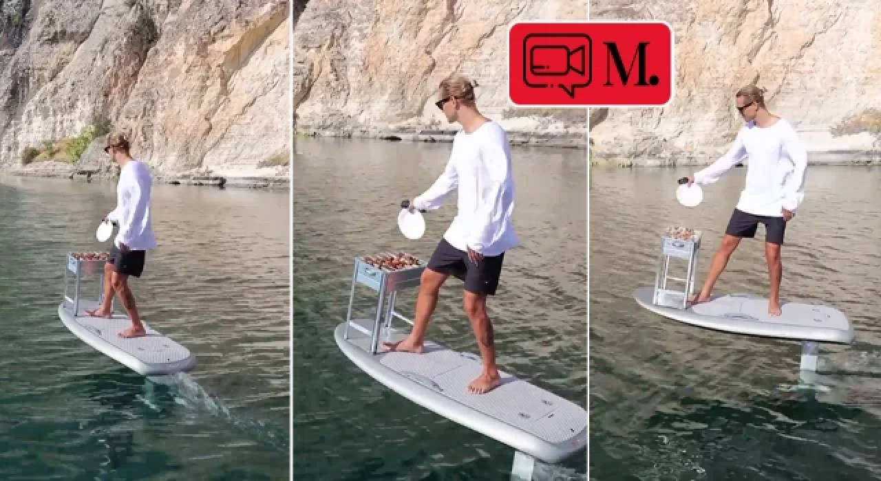 Sosyal medya fenomeni Süleyman Atlı, su sporları festivaline katılmak için geldiği kebap diyarı Gaziantep'te sörf tahtası üzerine kurulan mangalı yaktı.