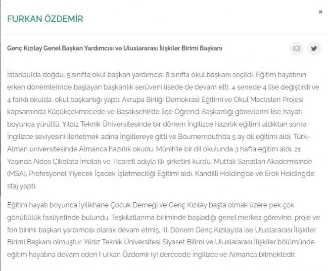 Genç Kızılay ekibinde başkan yardımcılığı ve Uluslararası İlişkiler Birimi Başkanı Furkan Özdemir’in CV’sini görenler şaşkınlığa uğradı.