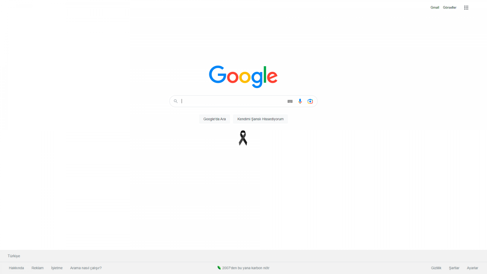 Merkez üssü Kahramanmaraş’ın Pazarcık ve Elbistan ilçeleri olan ve 10 ili etkileyen 7,7 ve 7,6 büyüklüğündeki depremler sebebiyle 7 gün süreyle milli yas ilan edildiğini açıklamasının ardından, Google arama motoru, Türkçe ana sayfasına siyah kurdele koydu.