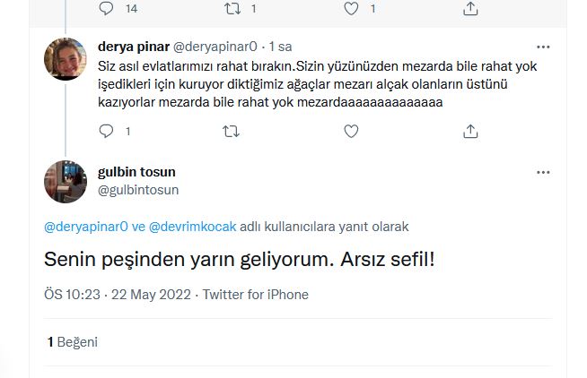 Tosun ise bu yoruma, "Senin peşinden yarın geliyorum. Arsız sefil" yanıtını verdi. Gülbin Tosun'un bu yanıtı, sosyal medyada tepkilere sebep oldu.