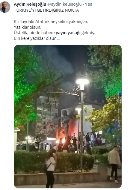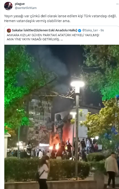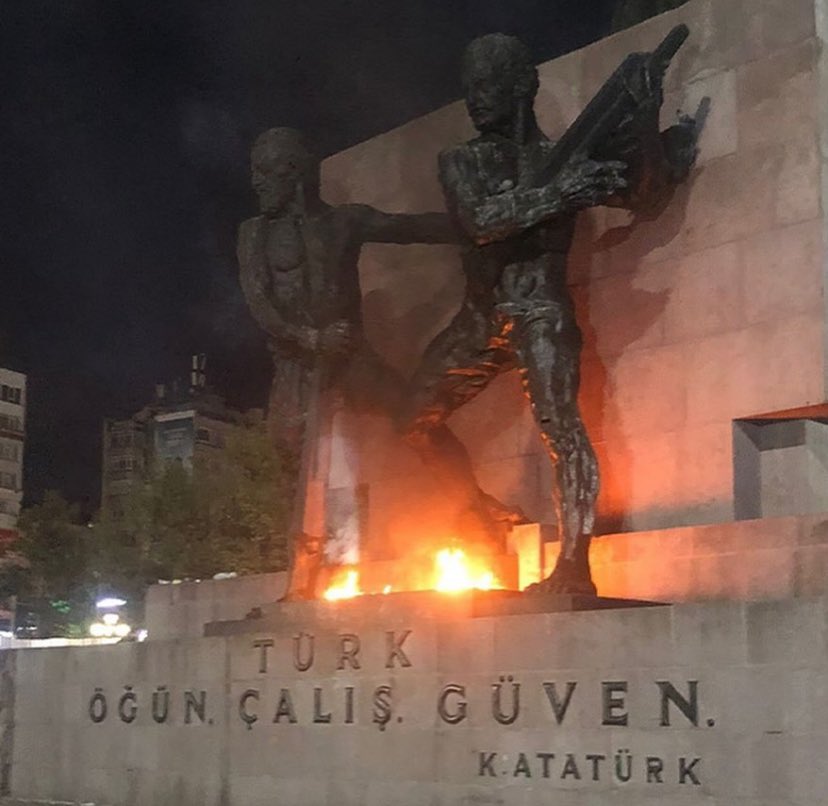 Açılışına 1 Kasım 1934’te Mustafa Kemal Atatürk’ün katıldığı ve yapılmasını özellikle istediği Ankara'nın Kızılay Meydanı'nda bulunan Güvenpark anıtı ateşe verildi.