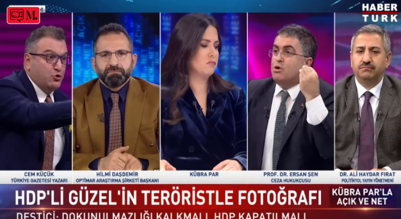 HaberTürk TV'de Kübra Par'ın sunduğu Açık ve Net programına konuk olan Prof. Dr. Ersan Şen ve Cem Küçük arasında gergin dakikalar yaşandı.