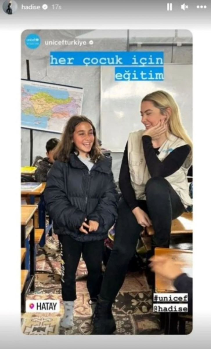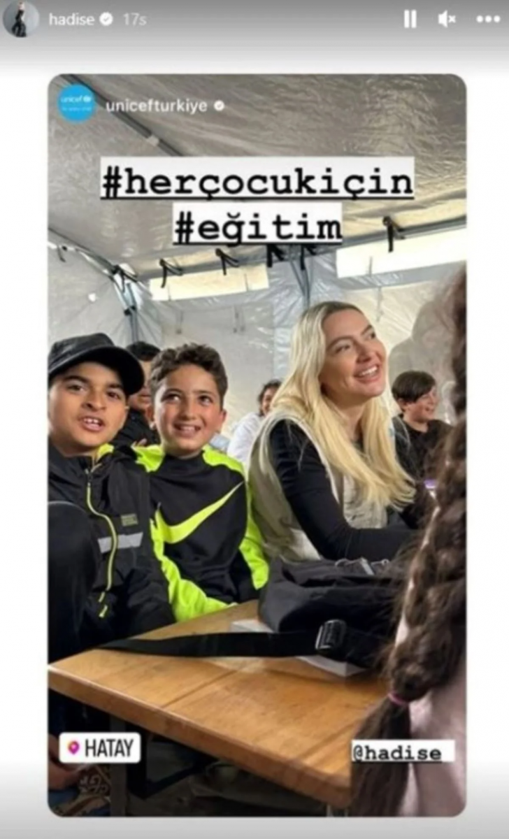 Şarkıcı Hadise, çocuk hakları savunucusu olduğu UNICEF ile Hatay’a gitti.